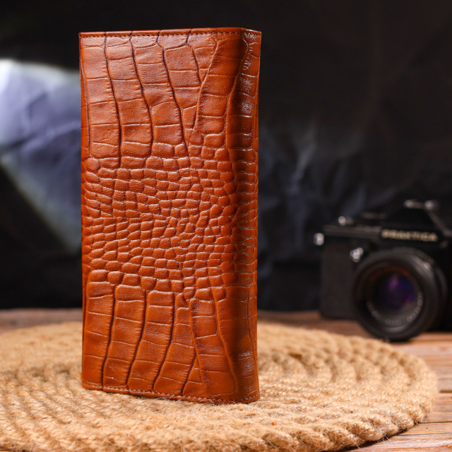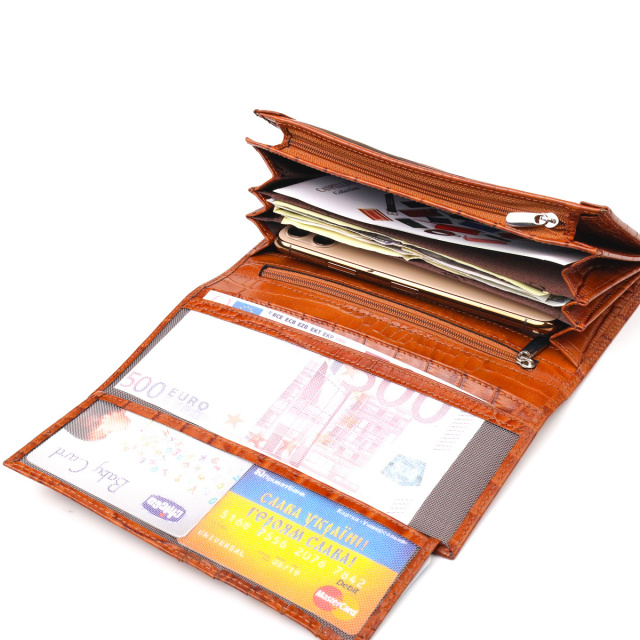 - гаманець упакований у фірмову коробочку. Унікальний горизонтальний жіночий гаманець із фактурної натуральної шкіри з тисненням під крокодила. Аксесуар має три великі кишені для купюр, три прилеглі кишені, вісім осередків для карток, три з них під сіточкою, монетницю на блискавці. Виріб закривається клапаном на кнопку. Відмінна ідея для подарунка, яка не залишить байдужою жодну жінку. ОПЛАТА та ДОСТАВКА : накладний платіж з передоплатою 200 грн.Терміни відправлення : 1-3 робочих днів