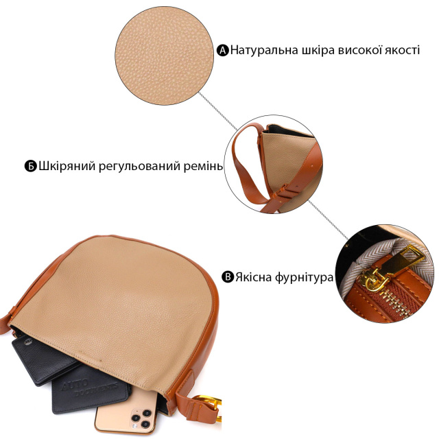 - регульований шкіряний плечовий ремінь; Чудова жіноча сумка на кожен день із натуральної шкіри високої якості. Виріб дуже зручний, можна носити на плечі та через плече. Модель доповнена якісною фурнітурою, колір жовтого золота. Аксесуар має одне основне відділення, всередині якого тканинна косметичка на блискавці. Стильна та зручна сумка яка розмістить усі дрібниці та навіть більше. ОПЛАТА та ДОСТАВКА : накладний платіж з передоплатою 200 грн.Терміни відправлення : 1-3 робочих днів
