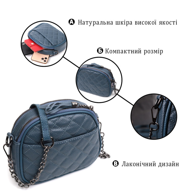 - знімний шкіряний навпіл з ланцюжком плечовий ремінь. Якісна сумка для жінок невеликого розміру на два автономні відділення з натуральної шкіри флотар, стьобана модними ромбами. Аксесуар складається з двох автономних відділень, кишені відкритого типу, потайної кишені на блискавці та зовнішньої кишені відкритого типу. Носити сумку можна в руці, на плечі і через плече, для цього є шкіряний ремінь, що знімається. В аксесуарі використано якісну фурнітуру кольору темного срібла. Відмінний варіант сумки для жінок, які люблять якісні та стильні речі. ОПЛАТА та ДОСТАВКА : накладний платіж з передоплатою 200 грн.Терміни відправлення : 1-3 робочих днів