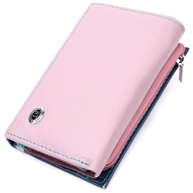 - закривається на магніти. Якісне жіноче портмоне в три складання з натуральної шкіри найвищої якості. Перше, що впадає в око це колірне рішення, замість однотонного аксесуара ми маємо різнокольоровий, який містить два основні зовнішні кольори і кілька додаткових всередині. Шкіряне портмоне дуже практичне і служить досить довго. Аксесуар складається з двох містких кишень для купюр, кишені на блискавці через всю довжину, п'яти осередків для карт, прозорого віконця для пропуску та зовнішньої кишені на блискавці з перегородкою, що чудово прослужить для монет. Портмоне доповнено надійною фурнітурою. Укомплектований гаманець у фірмову картонну коробку білого кольору.