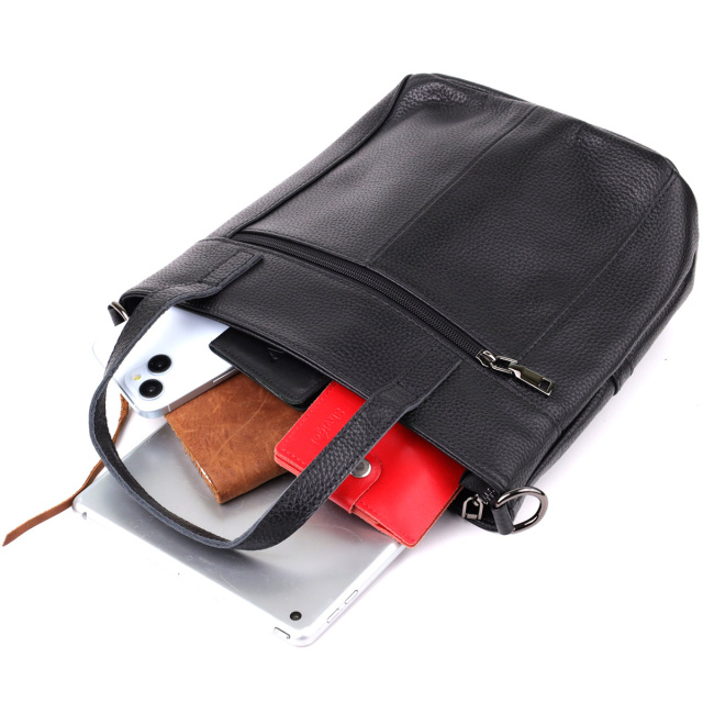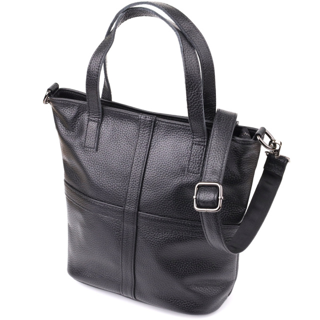- знімний ремінь. Стильна чорна шкіряна сумка у формі трапеції – це універсальний аксесуар, що поєднує сучасну елегантність та практичність. Вона виконана з натуральної шкіри високої якості, відрізняється щільною структурою та привабливим лаконічним силуетом. Сумка закривається на блискавку і має зручне основне відділення, всередині якого передбачена потайна кишеня на блискавці, кишеня-перегородка на блискавці та відкрита кишеня для дрібниць. Тверде дно допомагає сумці зберігати форму, а фурнітура кольору темного срібла наголошує на вишуканому характері моделі. Для зручності носіння передбачений знімний ремінь, що робить сумку комфортною як у повсякденних, так і більш урочистих образах. ОПЛАТА та ДОСТАВКА : накладний платіж з передоплатою 200 грн.Терміни відправлення : 1-3 робочих днів