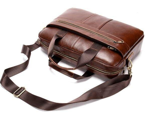 - регульований текстильний ремінець, що знімається. Ділова чоловіча сумка з натуральної шкіри в класичному дизайні. Аксесуар можна носити, як в руках за допомогою ручок, так і на плечі є текстильний ремінець, що знімається. Модель доповнена металевою фурнітурою золотистого кольору. По краях аксесуар прошитий рудою ниткою. Ви повинні розуміти, що трохи переплативши за шкіряну сумку ви виграєте в тому, що вона прослужить вам набагато довше ніж текстильні або з замінника. Аксесуар зручно тримати в руці. Сумка неважка і має величезний функціонал. У ній вам буде зручно носити документи або планшет або книгу. В сумку легко поміститься ноутбук і вона буде вам прекрасним помічником на ділових зустрічах або зборах. З такою сумкою буде зручно їздити у відрядження або дрібні подорожі. Вона підкреслить ваш статус і відчуття стилю. Сумка буде бажаним подарунком для будь-якого чоловіка. Аксесуар упакований в тканинний мішок, що захищає його від пилу і вологи під час того як ви його не використовуєте.