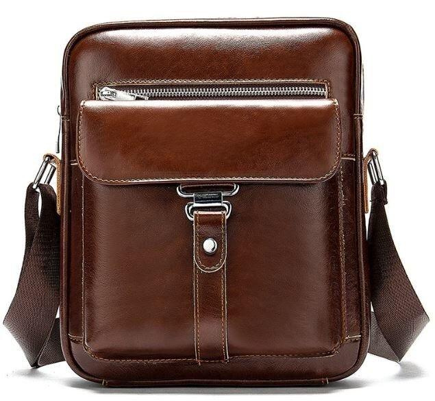 Компактна сумка для чоловіків, які цінують якість і не люблять величезних сумок. Сумка оптимального розміру на кожен день. Поміститься гаманець, сигарети, документи, перекуски та маленька пляшка з водою. Виготовлена з натуральної шкіри. Виробництво - фабричний Китай високої якості. Сумка упакована в тканинний мішок, що дуже зручно для її зберігання. Фурнітура в сумці срібного кольору. Прошита міцними рудими нитками. Наш магазин контролює якість виробів, тому можна сміливо брати. Сумка буде хорошим і бажаним подарунком для будь-якого чоловіка. ОПЛАТА та ДОСТАВКА : накладний платіж з передоплатою 200 грн.Терміни відправлення : 1-3 робочих днів