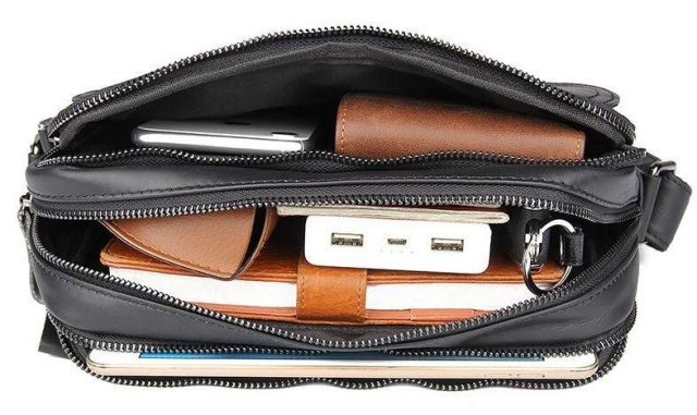 Розміри (ШхВхГ, см): 23.5х17 х5. Відмінна чоловіча сумка чорного кольору. Аксесуар виконаний з натуральної високоякісної шкіри, яка відрізняється легким, ледь помітним блиском. Колір фурнітури: темне срібло. На лицевій стороні розташована невелика кишеня під клапаном на магнітах. На задній зовнішній стороні знаходиться вмістке відділення на блискавці. Сумка має три автономних відділення, які закриваються на блискавки, всередині одного з них знаходяться дві кишені (один з них на блискавці). Підкладка виконана з міцного текстильного матеріалу коричневого кольору. ОПЛАТА та ДОСТАВКА : накладний платіж з передоплатою 200 грн.Терміни відправлення : 1-3 робочих днів