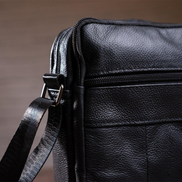 - текстильний ремінець на плече (незнімний); Сумка для стильних чоловіків. Зручна і багатофункціональна модель. Відмінний варіант на кожен день. Шкіра флотар стійка до зносу і довго носиться. На ній не видно подряпин і виглядає вона дуже ефектно. Модель доповнена фурнітурою кольору темного срібла. Усередині сумки підкладка коричневого кольору. Сумка прошита по краях чорною ниткою. Буде ідеальним варіантом для подарунка близькій людині.