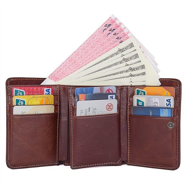 - 2 відкриті потаємні кишені. Функціональний шкіряний гаманець. На задній стороні аксесуара розташована монетниця, яка надає власнику гаманця швидкий доступ до дрібниці, не відкриваючи при цьому сам гаманець. Аксесуар легко поміщається в кишеню штанів і не займає багато місця в сумці або середніх розмірів барсетку. Гаманець упакований в текстильний пилозахисний чохол. ОПЛАТА та ДОСТАВКА : накладний платіж з передоплатою 200 грн.Терміни відправлення : 1-3 робочих днів