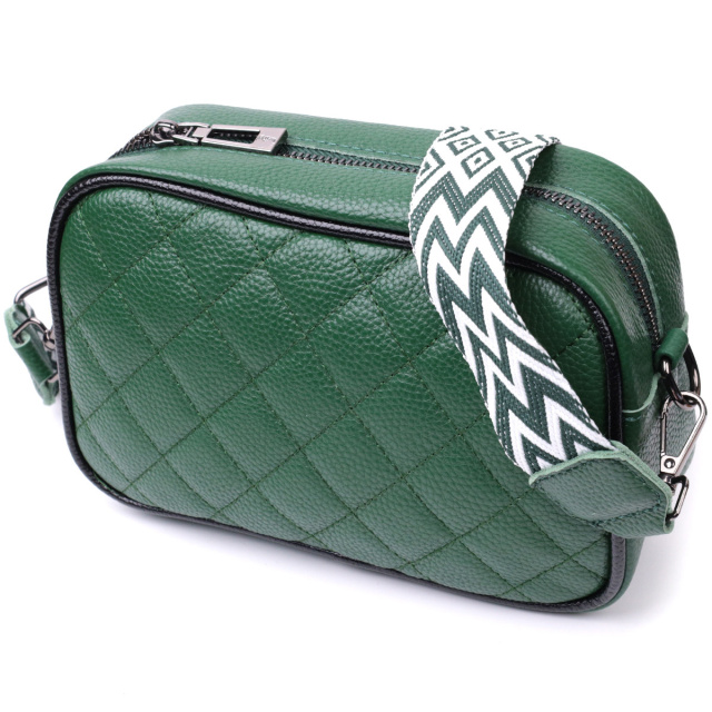 - знімний текстильний ремінь. Оригінальна жіноча стьобана ромбами на лицьовій стороні сумка. Виріб пошитий з якісної натуральної шкіри, яка довго носиться і не втрачає свого первісного вигляду. Аксесуар складається з одного основного відділення всередині якого розташована кишеня відкритого типу і кишеня на блискавці, також зовні розташована кишеня на блискавці, на тильній стороні. Носити сумку можна в руці як клатч, на плечі та через плече, для цього є текстильний ремінь, що знімається. У виробі використано якісну фурнітуру кольору темного срібла. Універсальний варіант сумки як на вечір так і як сумочка на кожен день. ОПЛАТА та ДОСТАВКА : накладний платіж з передоплатою 200 грн.Терміни відправлення : 1-3 робочих днів