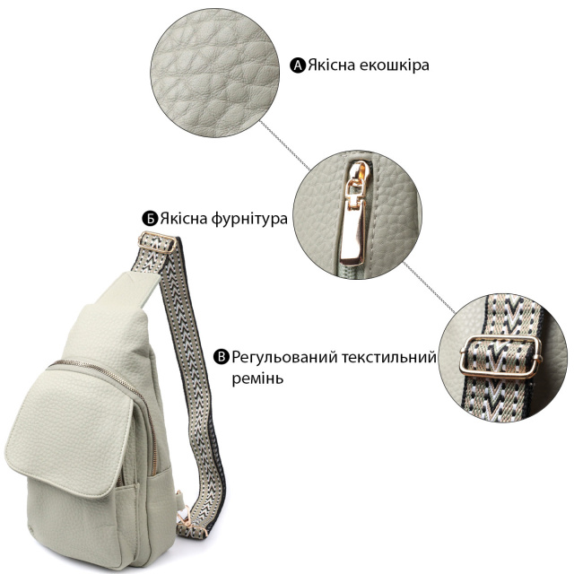 - текстильний плечовий регульований ремінець. Модна жіноча слінг сумка з зернистої екошкіри в унікальному кольорі фісташки. Ця модель складається з одного основного відділення, яке закривається на блискавку і в якому знаходиться кишеня на блискавці і чотири кишені для кредитних карток усередині, а також двох кишень зовні та одного отвору для кабелю або навушників, що дуже зручно в сучасному світі. Акцентом даної моделі є зручний регульований плечовий ремінець у етнічному стилі, що дуже модно вже кілька сезонів. Екошкіра - високоякісна альтернатива натуральному матеріалу, яка дуже стійка до тертя, до низьких температур, відмінно носиться на відміну від інших штучних матеріалів, а також має гіпоалергенний склад на відміну від натуральної шкіри. ОПЛАТА та ДОСТАВКА : накладний платіж з передоплатою 200 грн.Терміни відправлення : 1-3 робочих днів