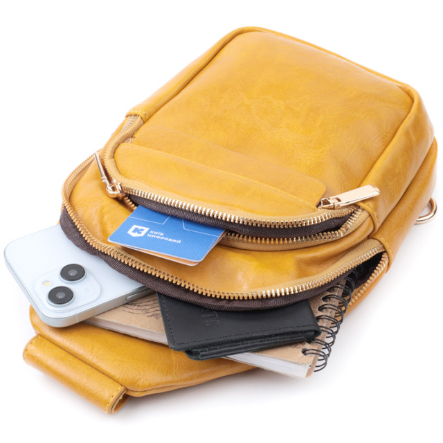 - текстильний плечовий регульований ремінець. Функціональна слінг сумка для жінок з гладкої екошкіри. Дана модель складається з одного основного відділення, яке закривається на блискавку і в якому знаходиться кишеня на блискавці і три кишені для кредитних карток усередині, а також трьох кишень зовні та одного отвору для кабелю або навушників, що дуже зручно в сучасному світі. Акцентом даної моделі є зручний регульований плечовий ремінець у етнічному стилі, що дуже модно вже кілька сезонів. Екошкіра - високоякісна альтернатива натуральному матеріалу, яка дуже стійка до тертя, до низьких температур, відмінно носиться на відміну від інших штучних матеріалів, а також має гіпоалергенний склад на відміну від натуральної шкіри. ОПЛАТА та ДОСТАВКА : накладний платіж з передоплатою 200 грн.Терміни відправлення : 1-3 робочих днів