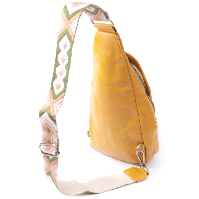 - текстильний плечовий регульований ремінець. Яскрава слінг сумка для жінок з красивою фактурною екошкірою. Дана модель складається з одного основного відділення, яке закривається на блискавку і в якому знаходиться дві кишені відкритого типу всередині, а також двох кишень зовні та одного отвору для кабелю або навушників, що дуже зручно в сучасному світі. Акцентом даної моделі є зручний регульований плечовий ремінець у етнічному стилі, що дуже модно вже кілька сезонів. Екошкіра - високоякісна альтернатива натуральному матеріалу, яка дуже стійка до тертя, до низьких температур, відмінно носиться на відміну від інших штучних матеріалів, а також має гіпоалергенний склад на відміну від натуральної шкіри. Відмінний варіант сумки, який порадує будь-яку дівчину, тому що всі речі під рукою та в безпеці. ОПЛАТА та ДОСТАВКА : накладний платіж з передоплатою 200 грн.Терміни відправлення : 1-3 робочих днів