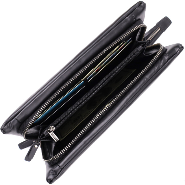 - кишеню на блискавці; Двосторонній шкіряний клатч – це стильний та практичний аксесуар, створений для тих, хто цінує не лише елегантний зовнішній вигляд, але й продуману функціональність. Модель виконана з гладкої натуральної шкіри високої якості, яка має приємну фактуру, стійкість до зносу та презентабельний зовнішній вигляд. Універсальний дизайн робить його ідеальним рішенням як для ділової ситуації, так і для повсякденного використання. Клатч складається із двох повноцінних відділень, кожне з яких закривається на окрему надійну блискавку. Таке конструктивне рішення забезпечує зручний доступ до вмісту та сприяє чудовій організації. Клатч оснащений не знімним шкіряним ремінцем для зап'ястя (кистовим), що дозволяє комфортно носити виріб на руці, звільняючи долоні. Це не тільки практично, але й надає образу завершеності та стилю. Такий аксесуар стане незамінним супутником у ділових поїздках, на зустрічах чи подорожах — у ньому все під рукою і при цьому надійно захищено. ОПЛАТА та ДОСТАВКА : накладний платіж з передоплатою 200 грн.Терміни відправлення : 1-3 робочих днів