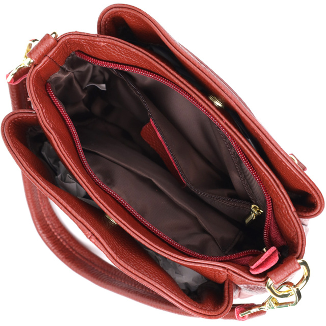 - знімні 2 шкіряні ремінці. Елегантна жіноча шкіряна сумка червоного кольору - ідеальне поєднання стилю, функціональності та вишуканості. Ця модель стане яскравим акцентом у будь-якому образі — будь то повсякденна цибуля або діловий гардероб. Виконана з якісної натуральної шкіри, сумка привертає увагу насиченим червоним кольором та продуманою конструкцією, що забезпечує зручність та організованість. Функціональний внутрішній простір поділено на три основні відділення: центральне відділення закривається на надійну блискавку, а два бічних на приховані магніти, що дозволяє швидко отримати доступ до потрібних речей. Усередині — потайна кишеня на блискавці і відкрита кишеня, що ідеально підходить для телефону, ключів або дрібниць. На тильній стороні розташована зовнішня кишеня на блискавці - відмінне рішення для зберігання предметів, до яких потрібен швидкий доступ, наприклад проїзного або документів. Фурнітура під благородне жовте золото надає моделі нотки вишуканості та підкреслює її преміальний стиль. Додатковою перевагою є два знімні шкіряні ремінці, які дозволяють носити сумку як на плечі, так і в руці, адаптуючи аксесуар під будь-який випадок та образ. Ця сумка - не просто аксесуар, а справжня знахідка для сучасної жінки, яка цінує якість, комфорт та виразний дизайн. ОПЛАТА та ДОСТАВКА : накладний платіж з передоплатою 200 грн.Терміни відправлення : 1-3 робочих днів