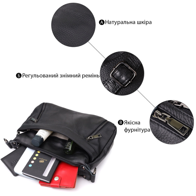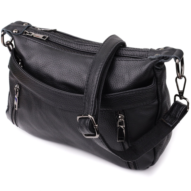 - знімні 2 шкіряні ремінці. Жіноча шкіряна сумка - це гармонійне поєднання елегантності та практичності. Модель виконана з натуральної шкіри з увагою до деталей та відмінно підходить для повсякденного використання. Сумка оснащена двома основними відділеннями на блискавках, що дозволяє зручно розподілити вміст. Усередині знаходяться потайна кишеня на блискавці і дві кишені відкритого типу - для дрібниць, телефону або ключів. На лицьовій стороні передбачено відразу три функціональні кишені: одна горизонтальна на блискавці і дві вертикальні — також на блискавках, що надає моделі динамічного, сучасного вигляду. На тильній стороні – додаткова кишеня на блискавці для швидкого доступу до важливих речей. Фурнітура під темне срібло підкреслює стиль сумки, а два знімних шкіряних ремінця дозволяють носити її в різних варіантах - у руці, на плечі або через плече. Ідеальний вибір для тих, хто цінує комфорт, місткість та сучасний стиль. ОПЛАТА та ДОСТАВКА : накладний платіж з передоплатою 200 грн.Терміни відправлення : 1-3 робочих днів
