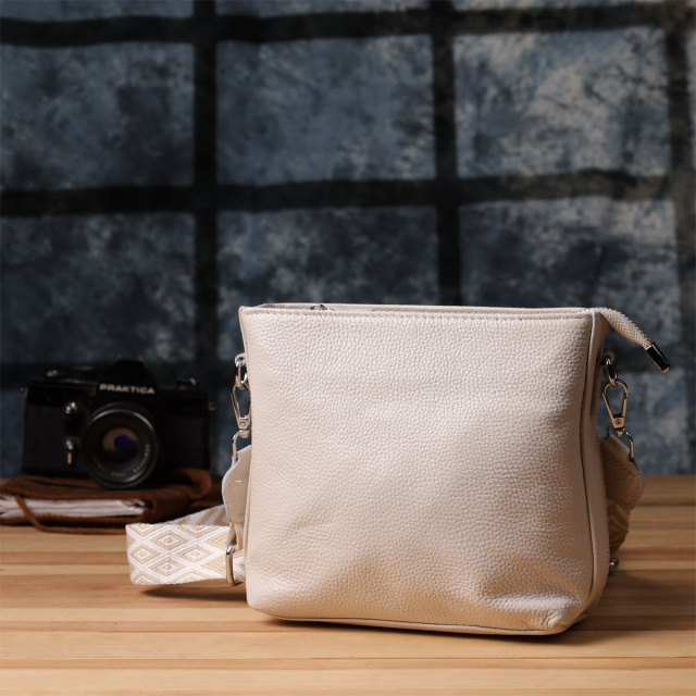 - знімний текстильний ремінь. Елегантна сумка з натуральної шкіри у класичному білому кольорі – втілення стриманого стилю та універсальності. Модель оснащена одним основним відділенням, яке закривається на блискавку, забезпечуючи надійний захист речей. Усередині передбачені дві зручні кишені: потайна кишеня на блискавці - для зберігання цінних дрібниць, і відкрита - для предметів, до яких необхідний швидкий доступ. Білий відтінок надає сумці витонченість і робить її ідеальним доповненням як до повсякденних, так і до більш ошатних образів. Фурнітура сріблястого кольору додає легкий блиск і наголошує на вишуканості аксесуара. Знімний текстильний ремінь забезпечує комфортну посадку на плече або через плече, роблячи сумку практичною для активного міського ритму. Біла шкіряна сумка - це аксесуар, який підкреслить почуття стилю, акуратність та смак своєї власниці, залишаючись актуальною поза часом.