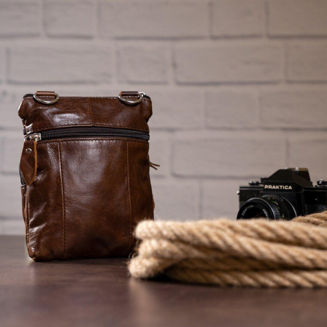 Компактна чоловіча шкіряна сумка для портмоне та документів. Виріб виконаний із якісної натуральної шкіри. Відмінно підійде автомобілістам. Сумка закривається на блискавку. Підкладка виготовлена з міцного текстильного матеріалу. Усередині: потайне відділення на блискавці та 2 накладні кишені для мобільних телефонів. ОПЛАТА та ДОСТАВКА : накладний платіж з передоплатою 200 грн.Терміни відправлення : 1-3 робочих днів