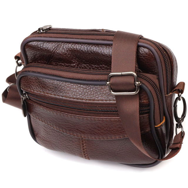 - підкладка із чорної тканини. Зручна горизонтальна чоловіча сумка на пояс невеликого розміру з натуральної шкіри. Аксесуар чудово підійде як для роботи, так і в дорогу. Сумка складається з основного відділення, що закривається на блискавку та двох кишень зовні, вони також закриваються блискавками. Носити сумку можна на поясі, є спеціальна шкіряна петелька з тильного боку, а також в комплекті йде текстильний знімний плечовий ремінець. Модель дуже практична та універсальна. Виріб стане чудовим подарунком для будь-якого чоловіка. ОПЛАТА та ДОСТАВКА : накладний платіж з передоплатою 200 грн.Терміни відправлення : 1-3 робочих днів