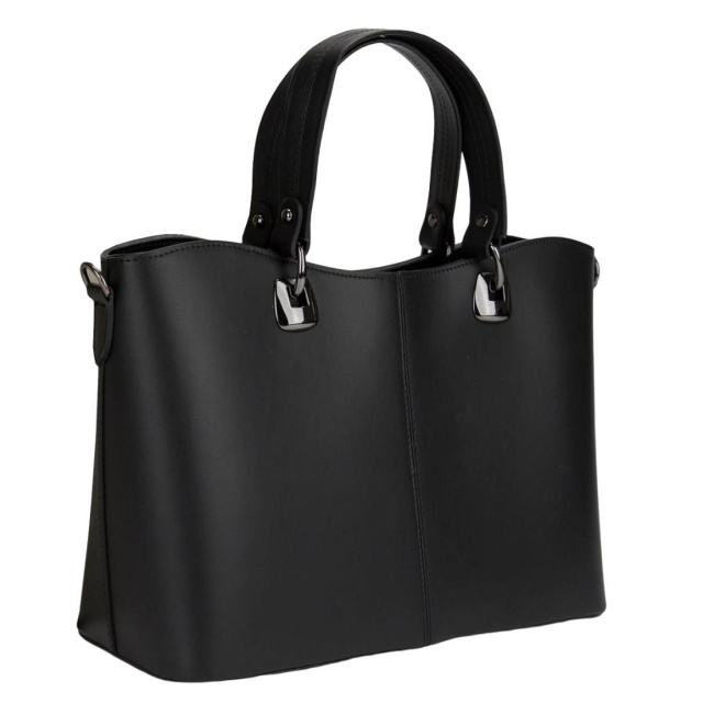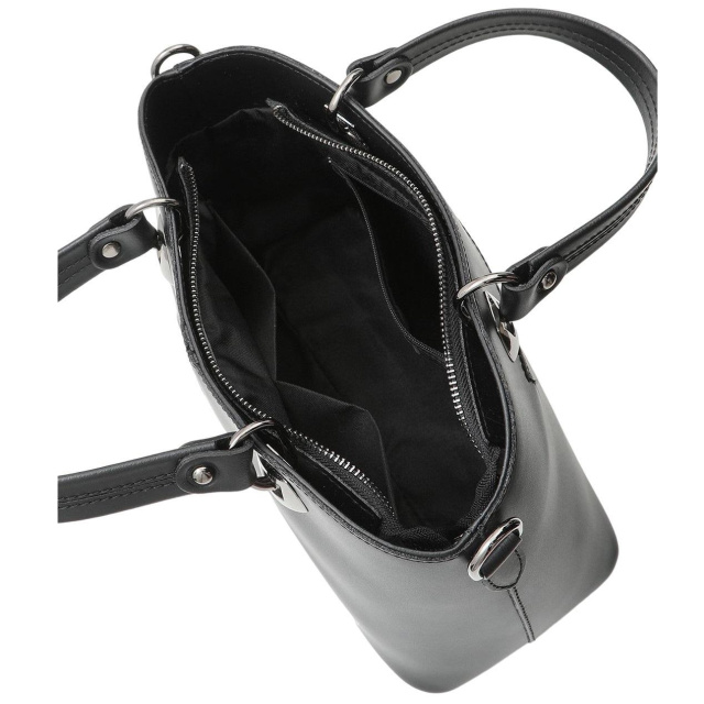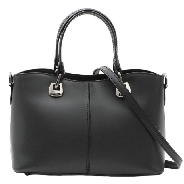 Сумка Італія 77627A чорна із натуральної шкіри гладкої фактури.