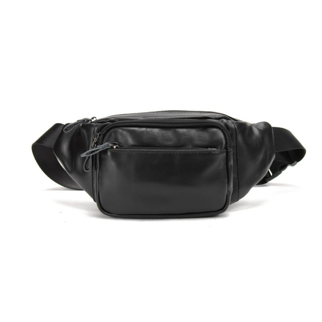 Чоловіча сумка на пояс виготовлена з натуральної шкіри чорного кольору.