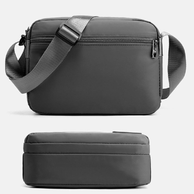 Сумка через плече у горизонтальному форматі 7T-999-6A пошита з міцного текстилю, з вологостійкого матеріалу, у чорному кольорі.