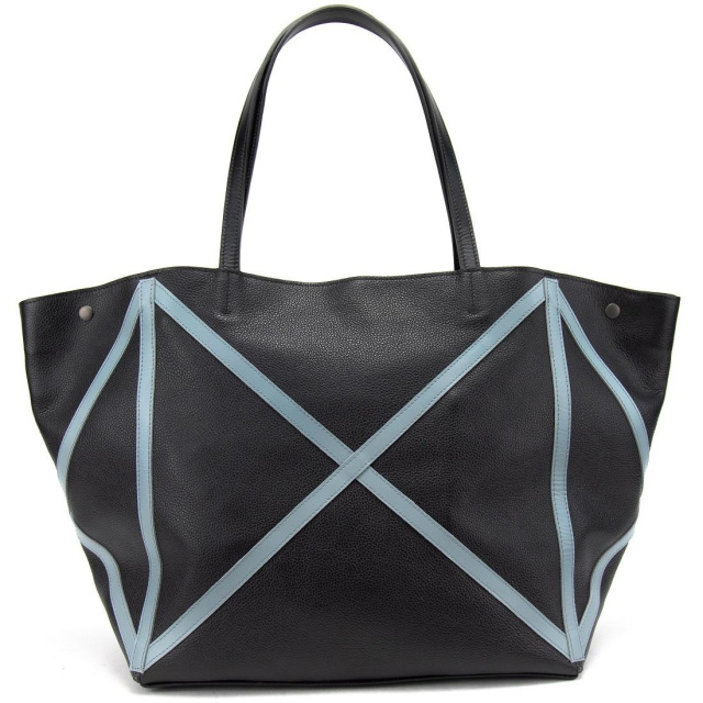 Шкіряний жіночий шоппер з акцентними блакитними швами 74835ABL-FL