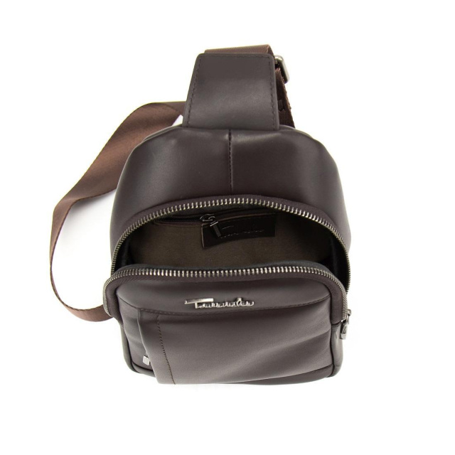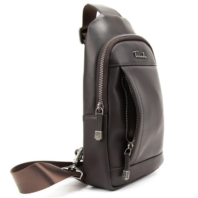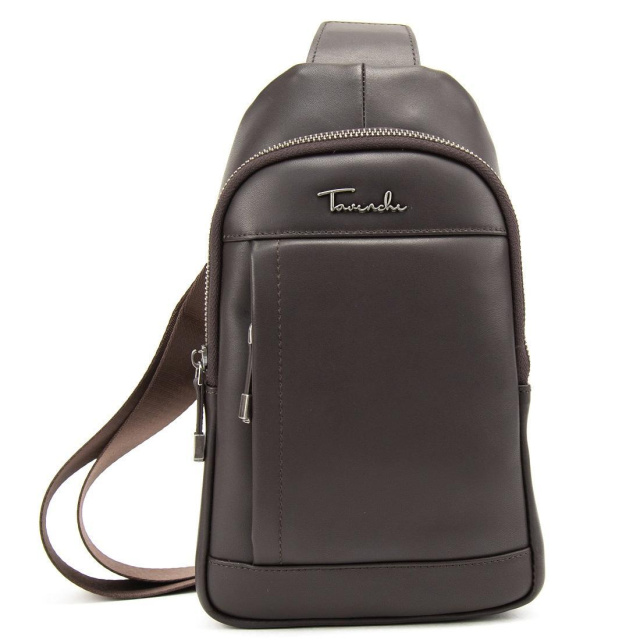 Чоловічий шкіряний коричневий слінг на плече 7-827C виготовлено з натуральної шкіри, що має гладку поверхню.