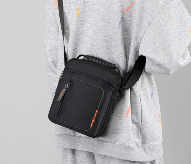 Чоловіча сумка через плече 72970A пошита із міцного текстилю у чорному кольорі.