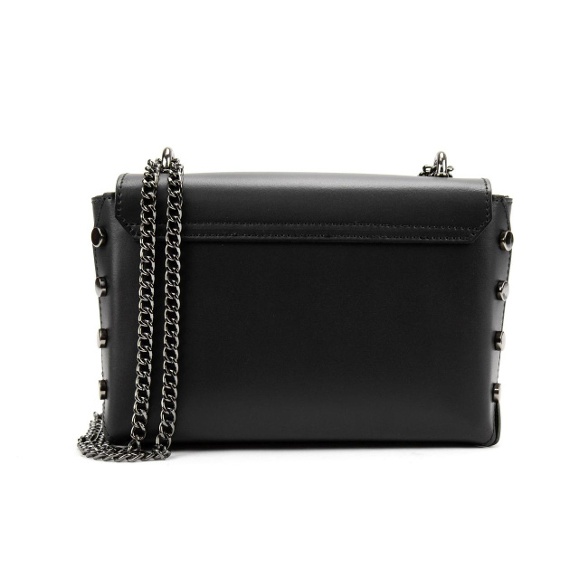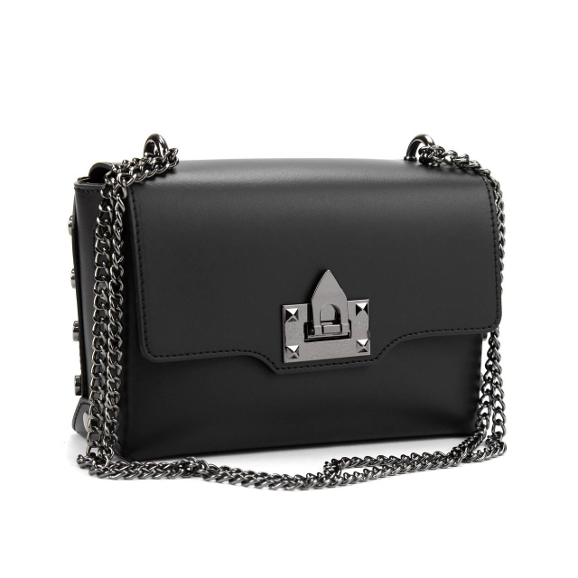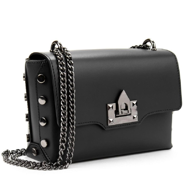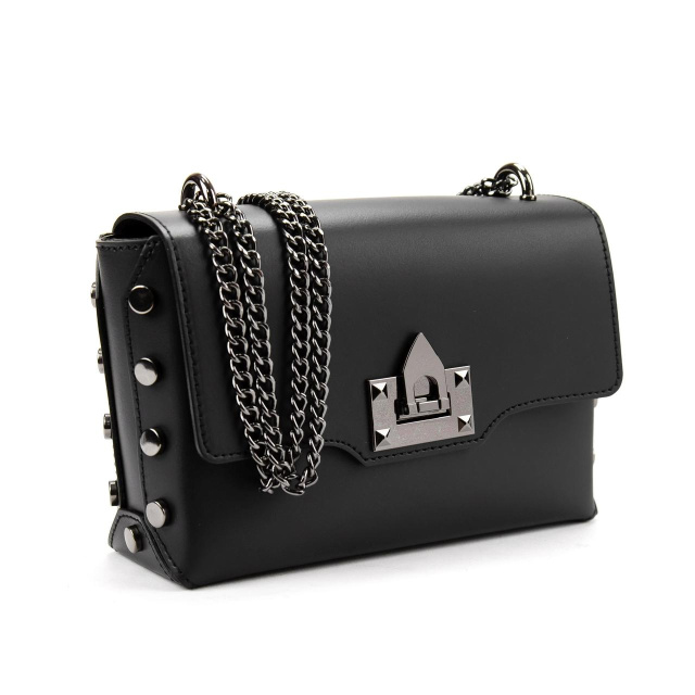 Жіноча сумка на ланцюжку Італія 79812A виготовлена з натуральної гладкої шкіри чорного кольору.