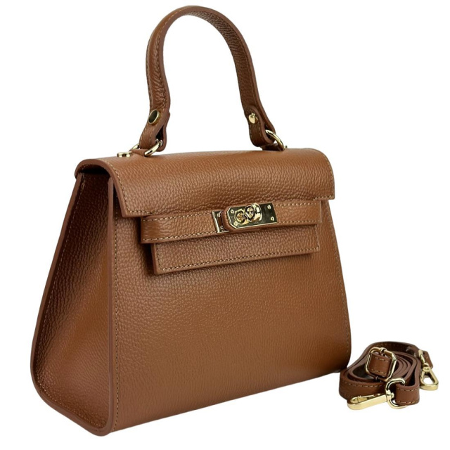 Одна коротка ручка та наплічний довгий ремінець зі шкіри регулюється по довжині, відстібається за допомогою карабінів.