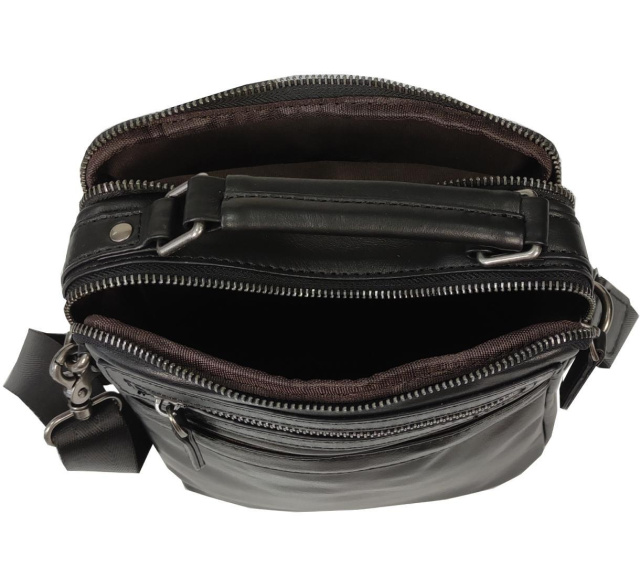 Чоловіча сумка 7161-1A виготовлена з натуральної шкіри чорного кольору. Особливості: розміри сумки становлять 20 х 24 х 6 см. Месенджер має два відділення, які закриваються на блискавку.