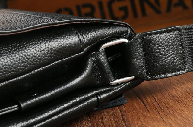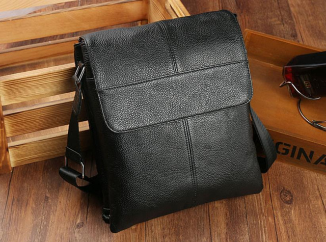 Чоловіча шкіряна сумка 7064A виготовлена з натуральної шкіри чорного кольору і має зернисту структуру.