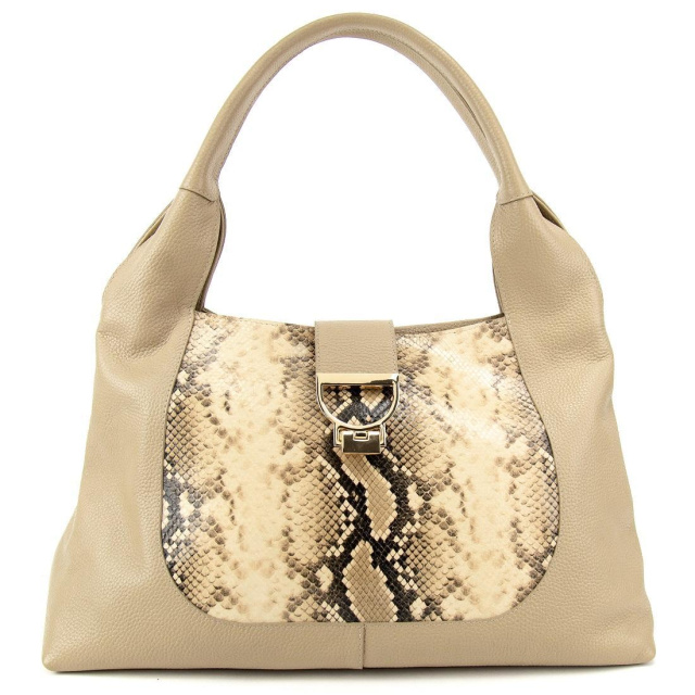Жіноча містка шкіряна сумка на плече із вставкою рептилія 7555WB-R