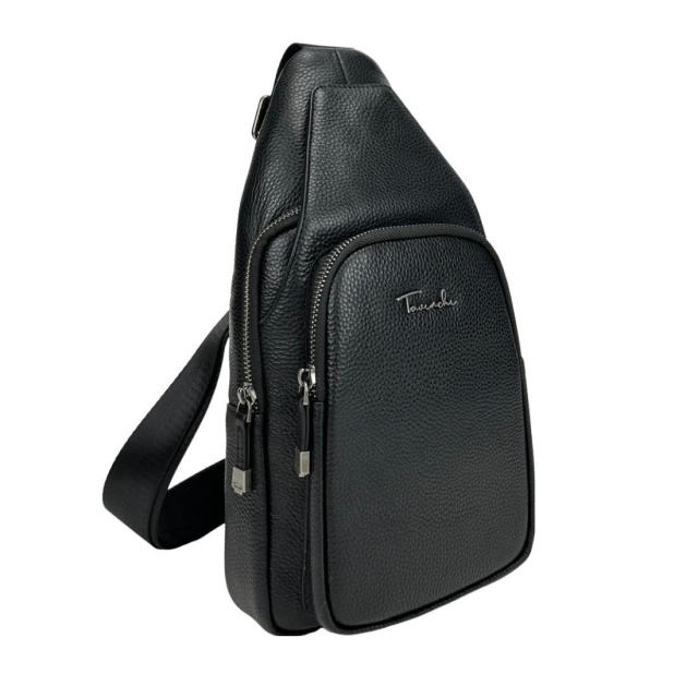 Чоловічий стінг через плече 7681A-1 виконаний із натуральної шкіри чорного кольору.