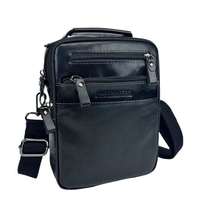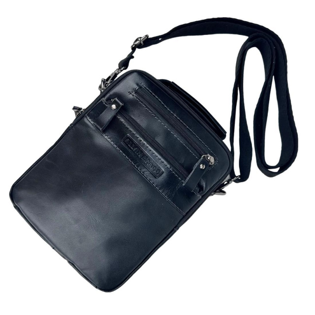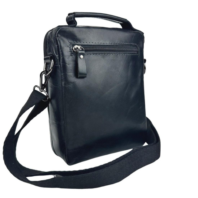 Чоловіча шкіряна чорна сумка месенджер із ручкою