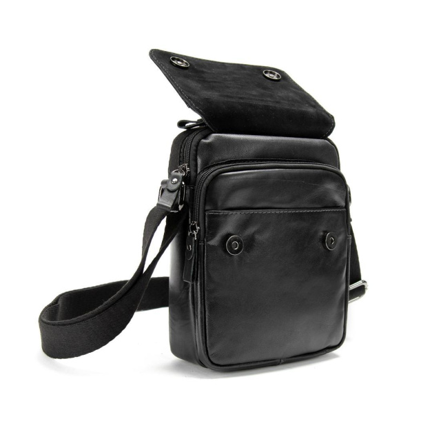 Сумка через плече 79108A із натуральної шкіри у чорному кольорі, гладка шкіра.