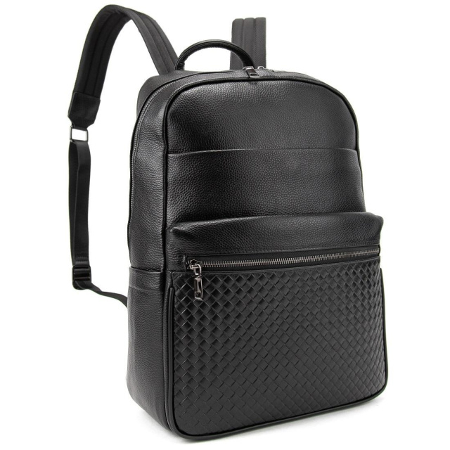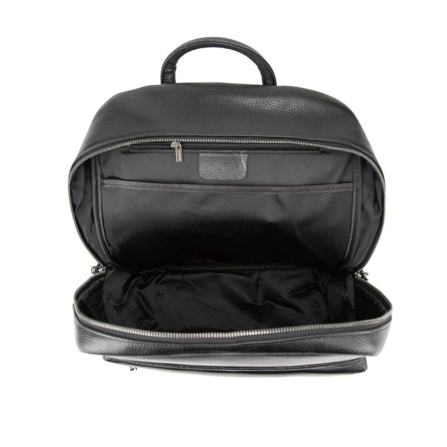 Чоловічий шкіряний рюкзак чорний 72418A виготовлений із натуральної шкіри чорного кольору, що має зернисту матову текстуру.