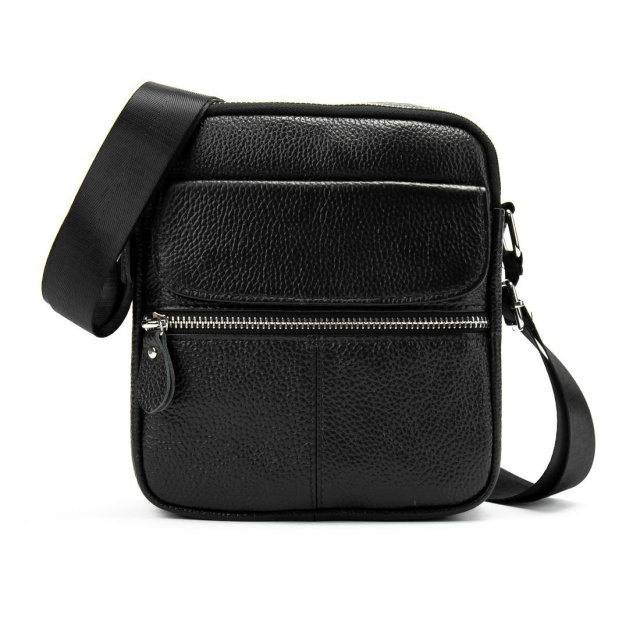 Сумка через плече 71189A з натуральної шкіри в чорному кольорі, зернистої фактури.