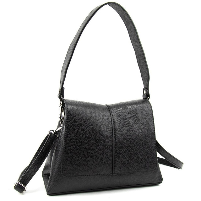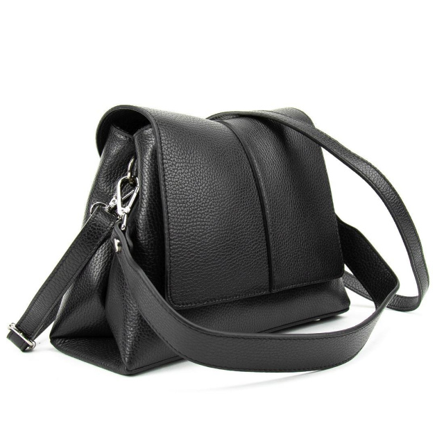 Сумочка чорна кросбоді з натуральної шкіри.