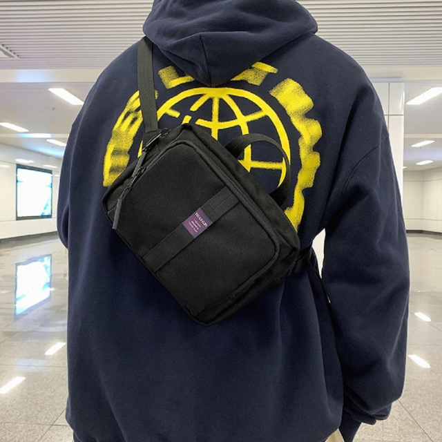 Поясний ремінь незнімного типу, регулюється по довжині. Універсальність даної моделі полягає в тому, що її можна носити як месенджер, і як поясну сумку. Також з тильного боку виробу пришито коротку ручку для комфортного перенесення її в руках.