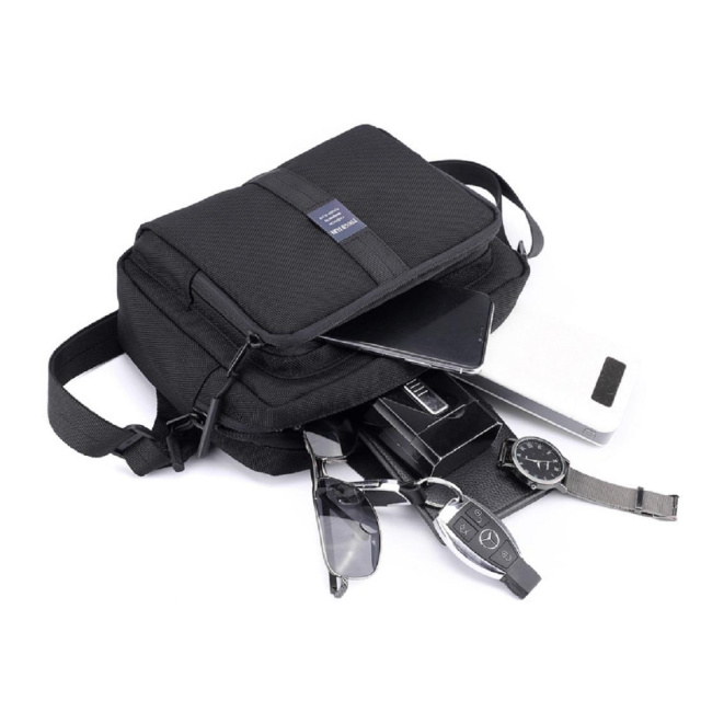 Сумка на пояс 7825A пошита з міцного текстилю, з вологостійким просоченням, в чорному кольорі.