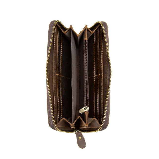Клатч має безліч слотів для банківських карток, основні відділення для купюр або смартфона та кишеню-перегородку на блискавці для монет.