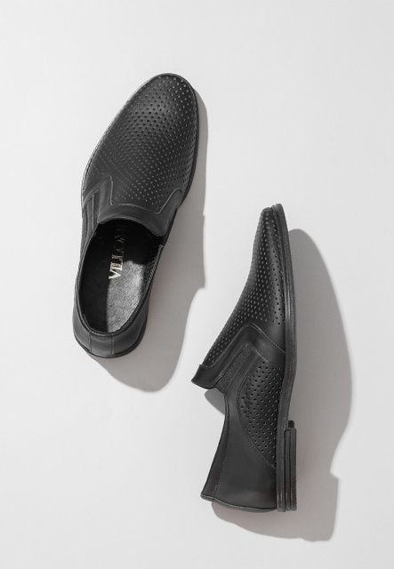 Чоловічі туфлі літні чорні шкіра натуральна перфорація 7kard-10