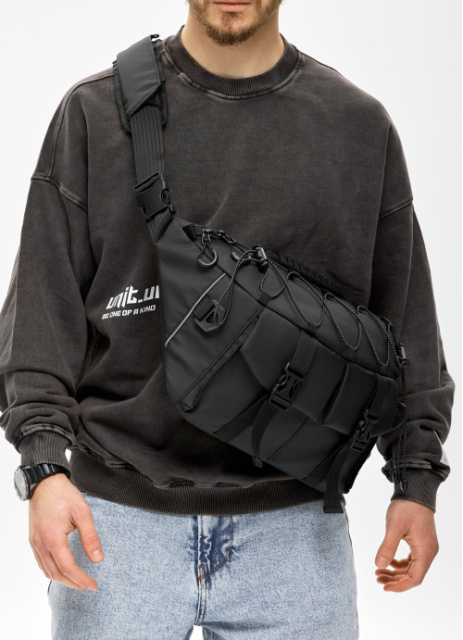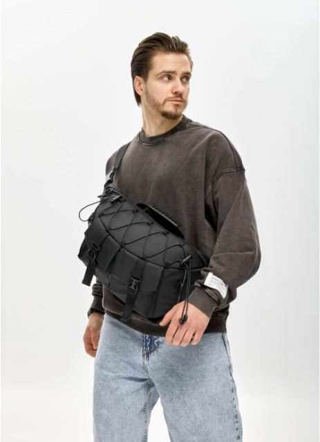 Блискавки та подвійні бігунки . Сумка оснащена регульованим плечовим ременем із м’якою накладкою для комфортного носіння. На ремні пластиковий фастекс та регулятор довжини. Загальний обват 190 см.