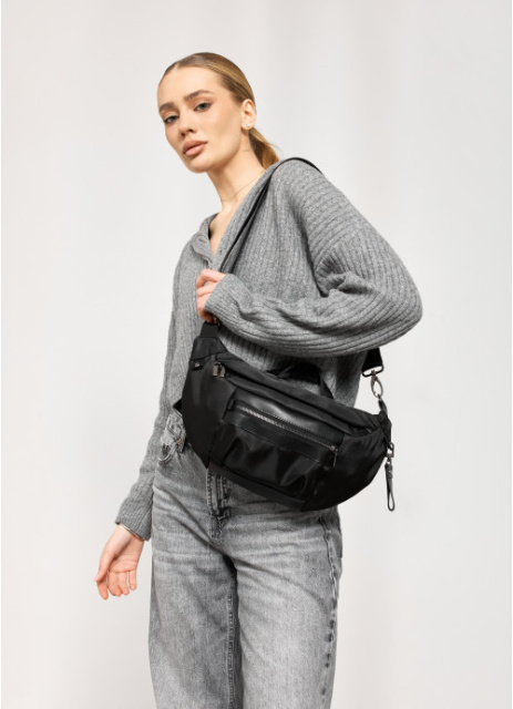 Велика чорна жіноча поясна сумка
