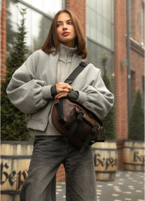 Велика жіноча поясна сумка бананка коричнева