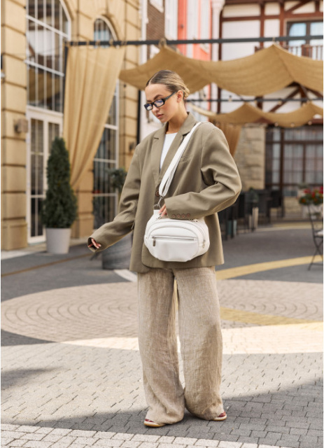 ззовні спереду сумки одна кишеня. Всередині сумки окреме одне основне відділення, кишеня на блискавці, відкрита кишеня та кишеня з сітки. Додатково має карабін для ключів. Ззовні на спинці сумки одна кишеня на блискавці. Стандартно поставляється на обхват по талії (через плече) від 86 см до 160 см: ремінь регулюється. При замовленні в коментарі зазначте необхідну довжину ременя, якщо вона відрізняється від стандартної.