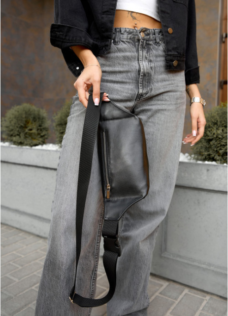 Сумка на пояс бананка з натуральної шкіри чорна