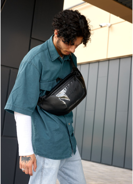 Велика чорна чоловіча поясна сумка бананка екошкіра