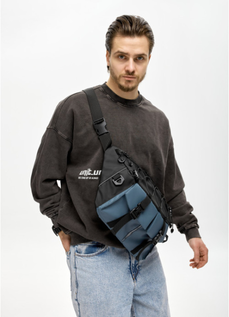 Блискавки та подвійні бігунки . Сумка оснащена регульованим плечовим ременем із м’якою накладкою для комфортного носіння. На ремні пластиковий фастекс та регулятор довжини. Загальний обват 190 см.