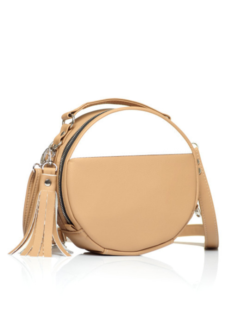 Кругла сумка бежева через плече кросбоді